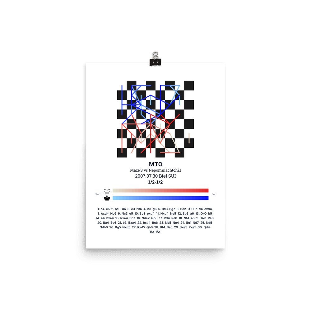 Museum-quality poster on thick, durable matte paper. A sharp, clean look for any chess visualisation.