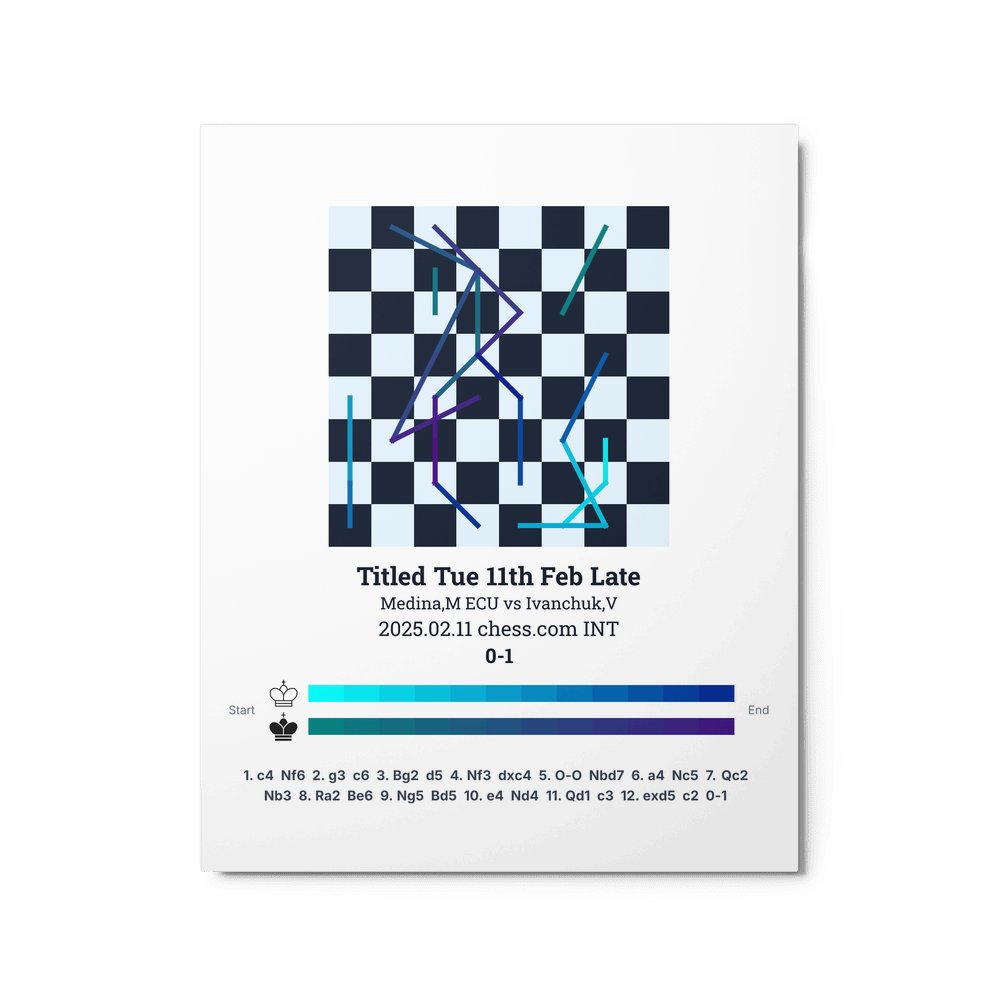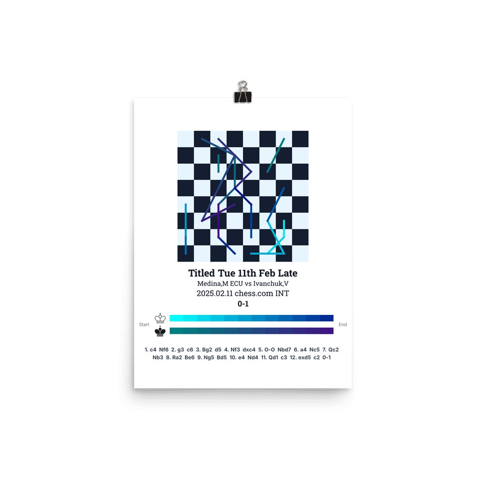 Museum-quality poster on thick, durable matte paper. A sharp, clean look for any chess visualisation.