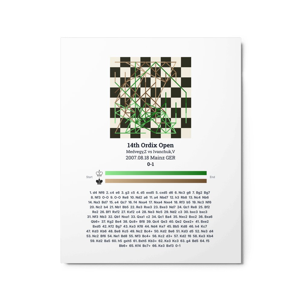 Museum-quality poster on thick, durable matte paper. A sharp, clean look for any chess visualisation.