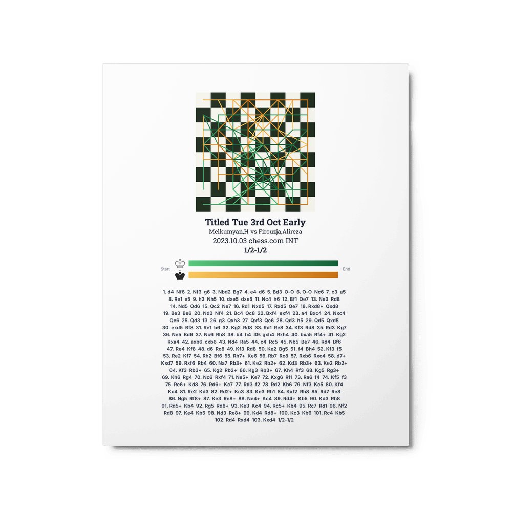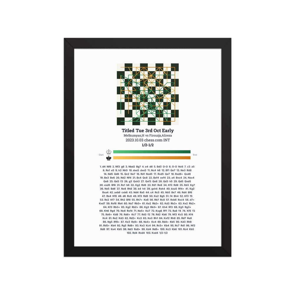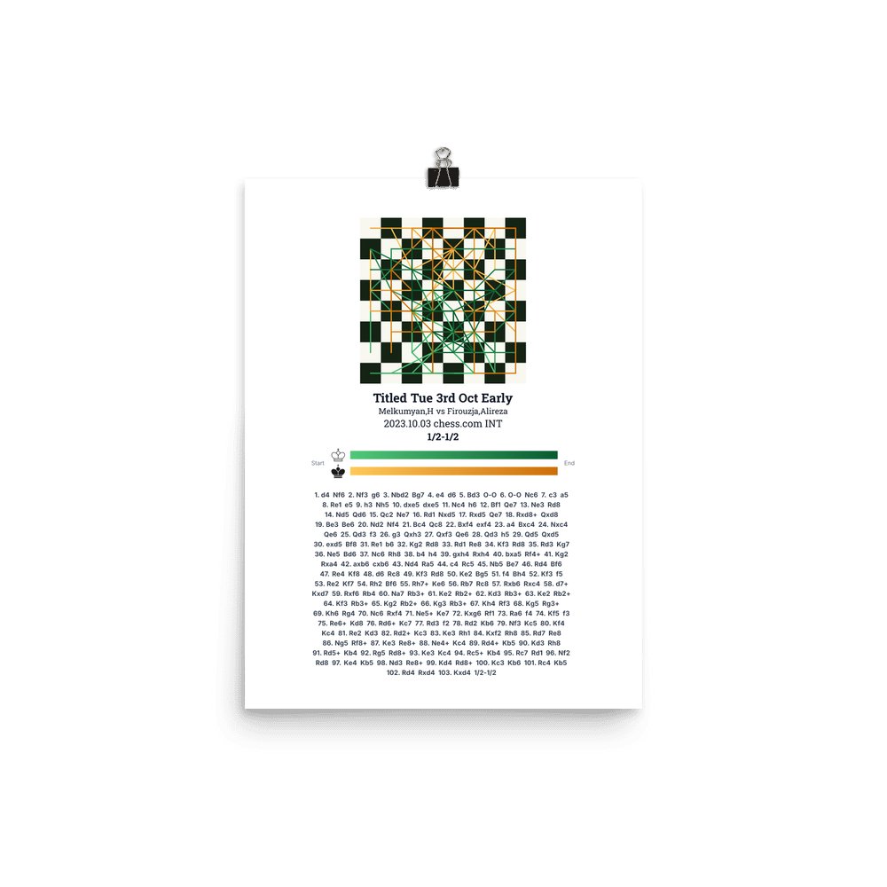 Museum-quality poster on thick, durable matte paper. A sharp, clean look for any chess visualisation.