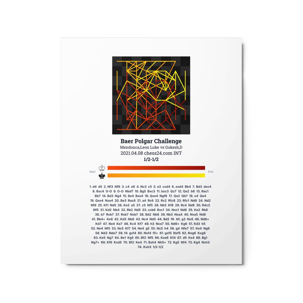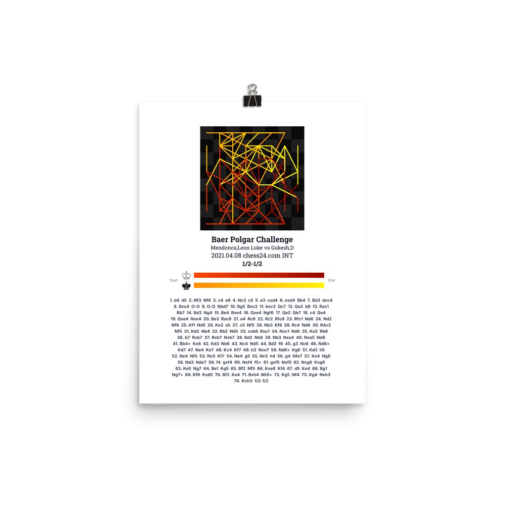 Museum-quality poster on thick, durable matte paper. A sharp, clean look for any chess visualisation.