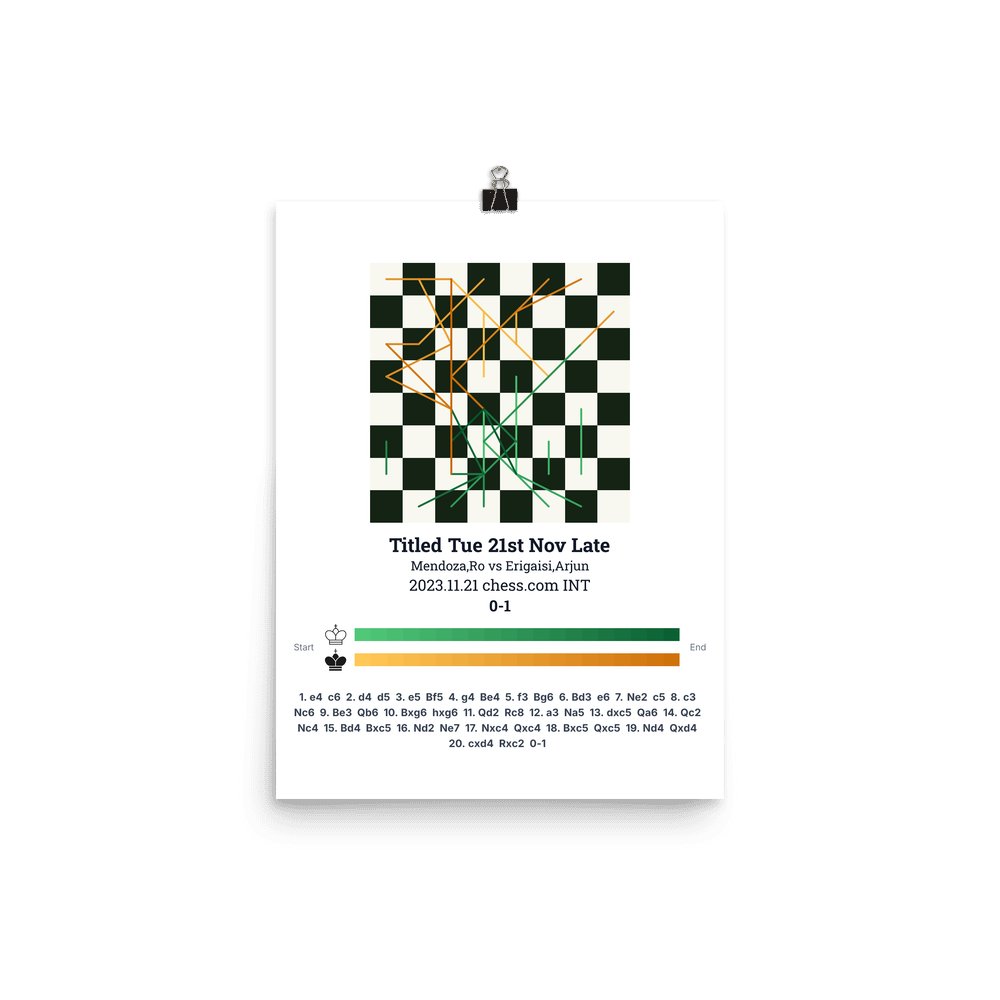 Museum-quality poster on thick, durable matte paper. A sharp, clean look for any chess visualisation.