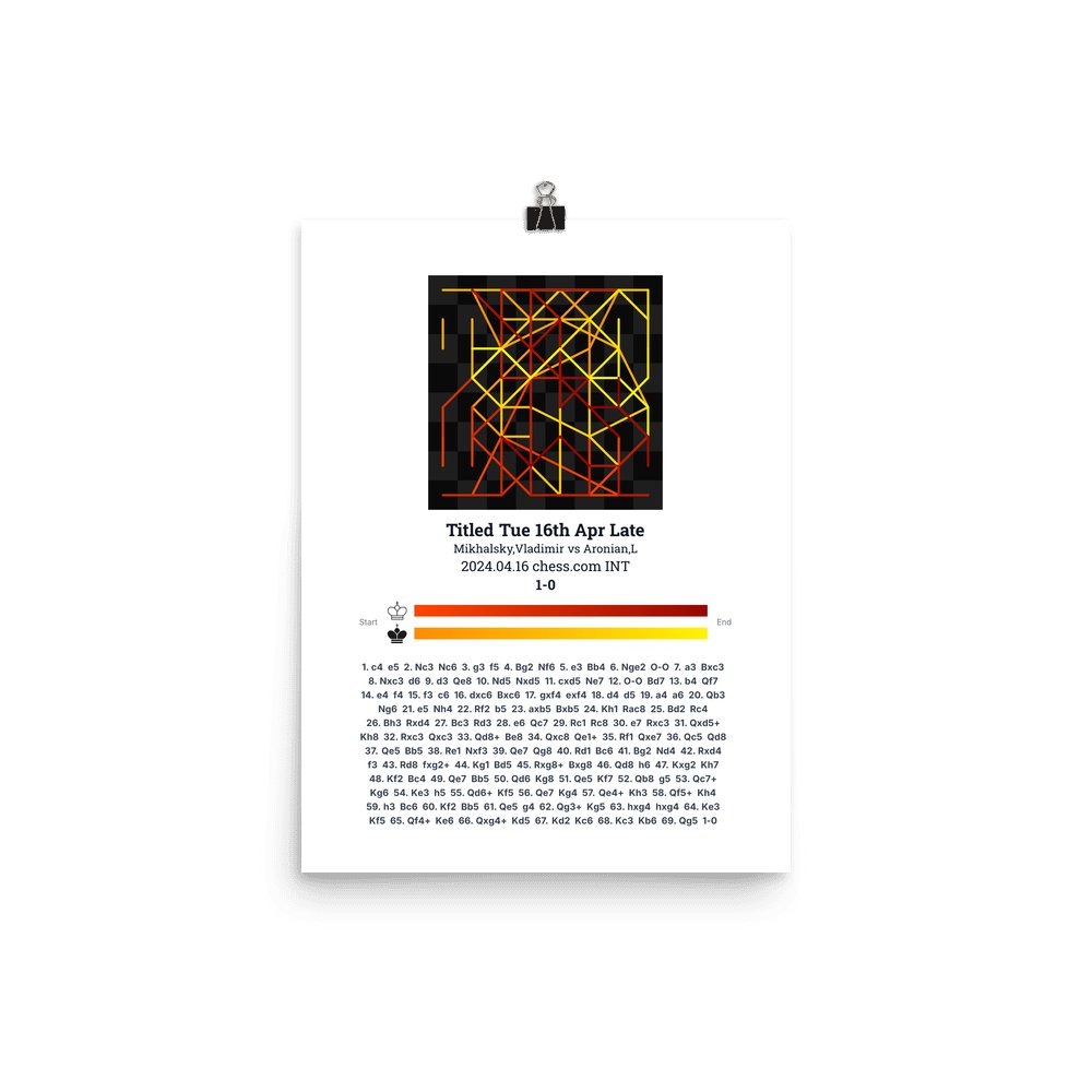 Museum-quality poster on thick, durable matte paper. A sharp, clean look for any chess visualisation.