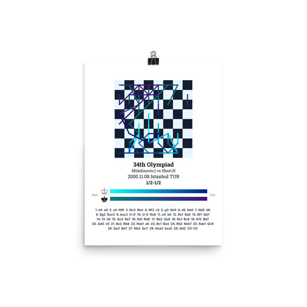 Museum-quality poster on thick, durable matte paper. A sharp, clean look for any chess visualisation.