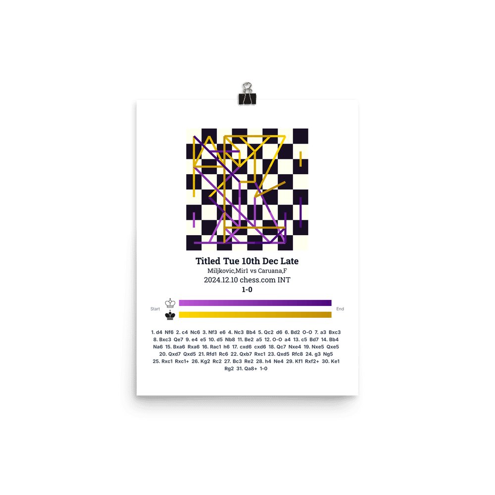 Museum-quality poster on thick, durable matte paper. A sharp, clean look for any chess visualisation.