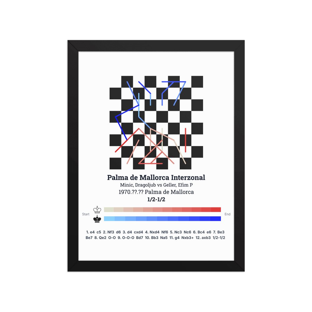 Museum-quality poster on thick, durable matte paper. A sharp, clean look for any chess visualisation.