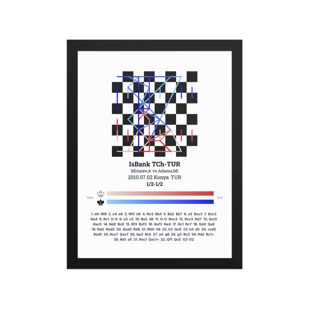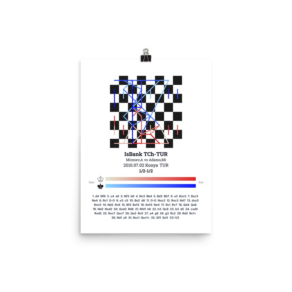 Museum-quality poster on thick, durable matte paper. A sharp, clean look for any chess visualisation.