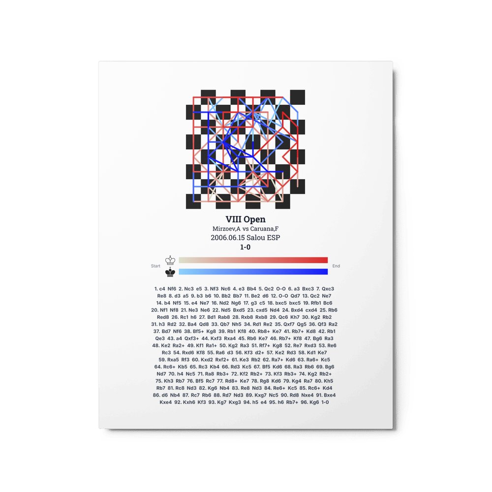 Museum-quality poster on thick, durable matte paper. A sharp, clean look for any chess visualisation.