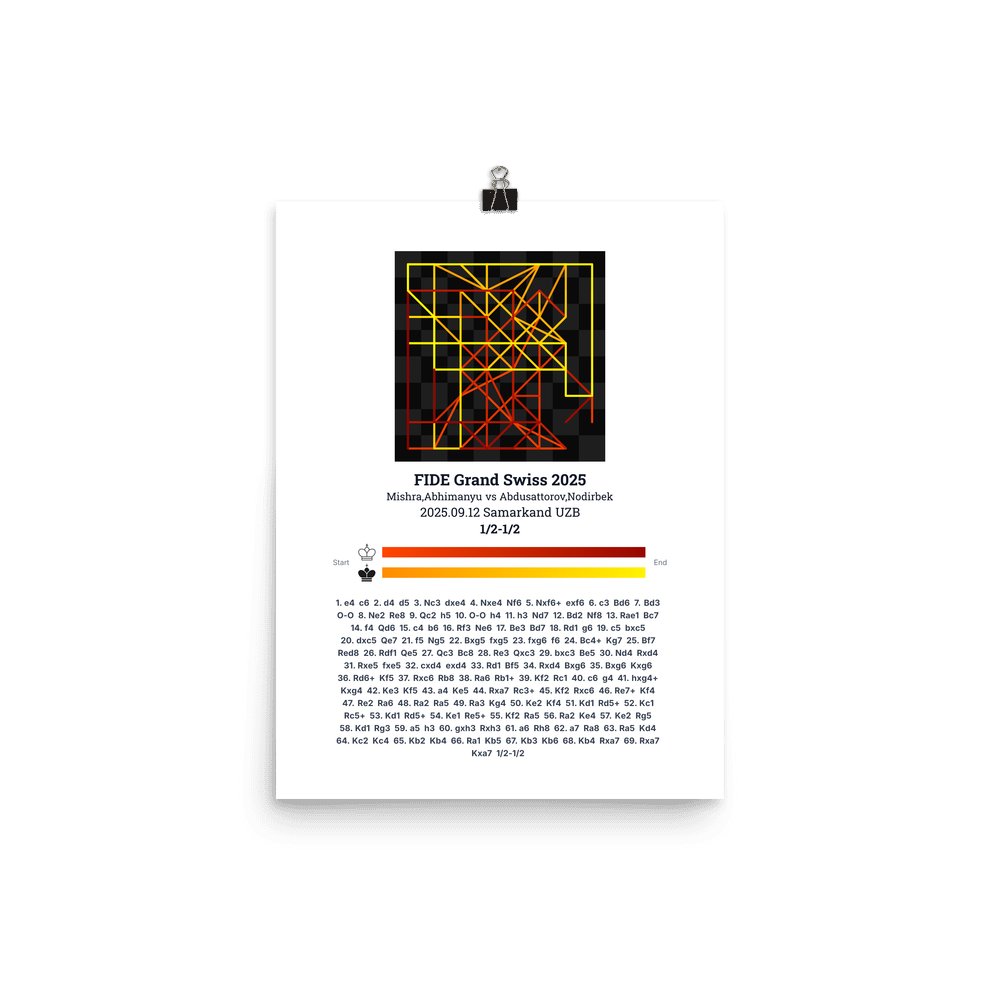 Museum-quality poster on thick, durable matte paper. A sharp, clean look for any chess visualisation.