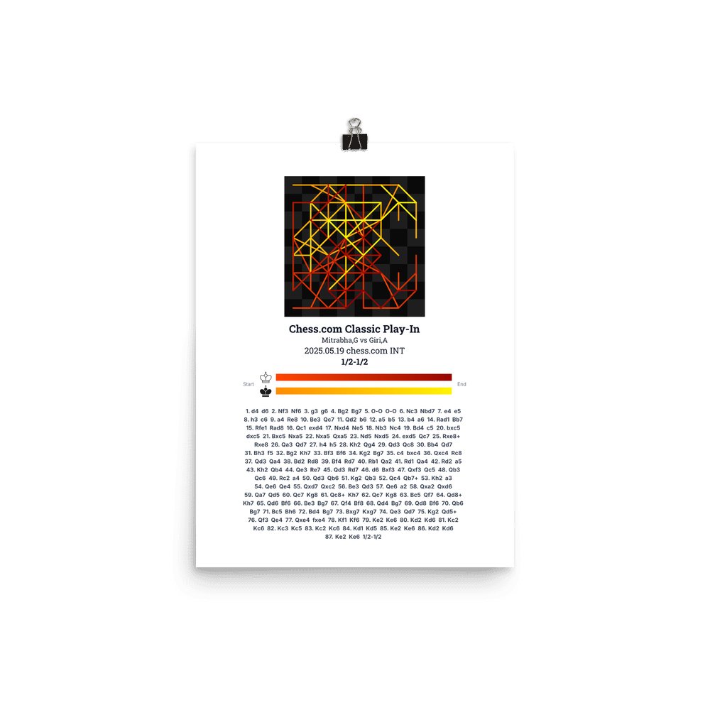 Museum-quality poster on thick, durable matte paper. A sharp, clean look for any chess visualisation.