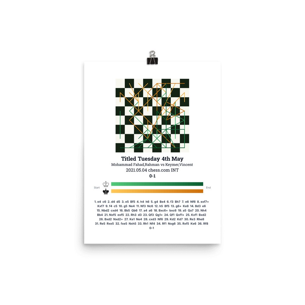 Museum-quality poster on thick, durable matte paper. A sharp, clean look for any chess visualisation.