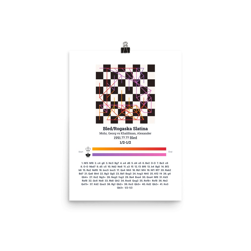 Museum-quality poster on thick, durable matte paper. A sharp, clean look for any chess visualisation.