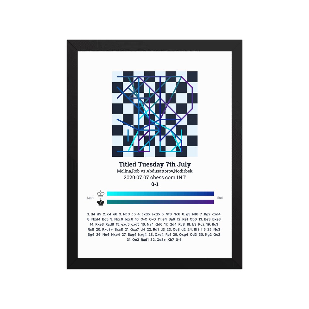 Museum-quality poster on thick, durable matte paper. A sharp, clean look for any chess visualisation.