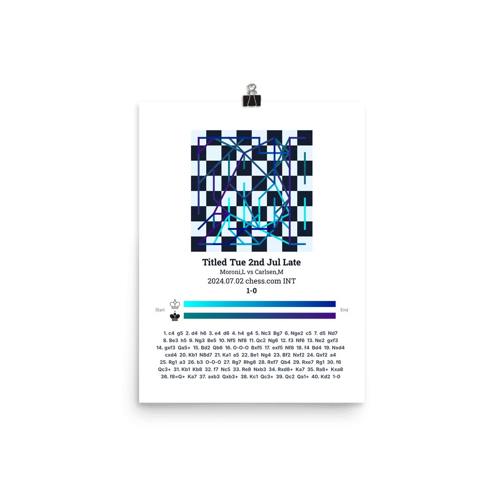 Museum-quality poster on thick, durable matte paper. A sharp, clean look for any chess visualisation.