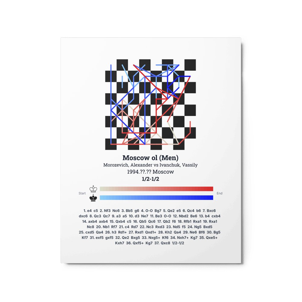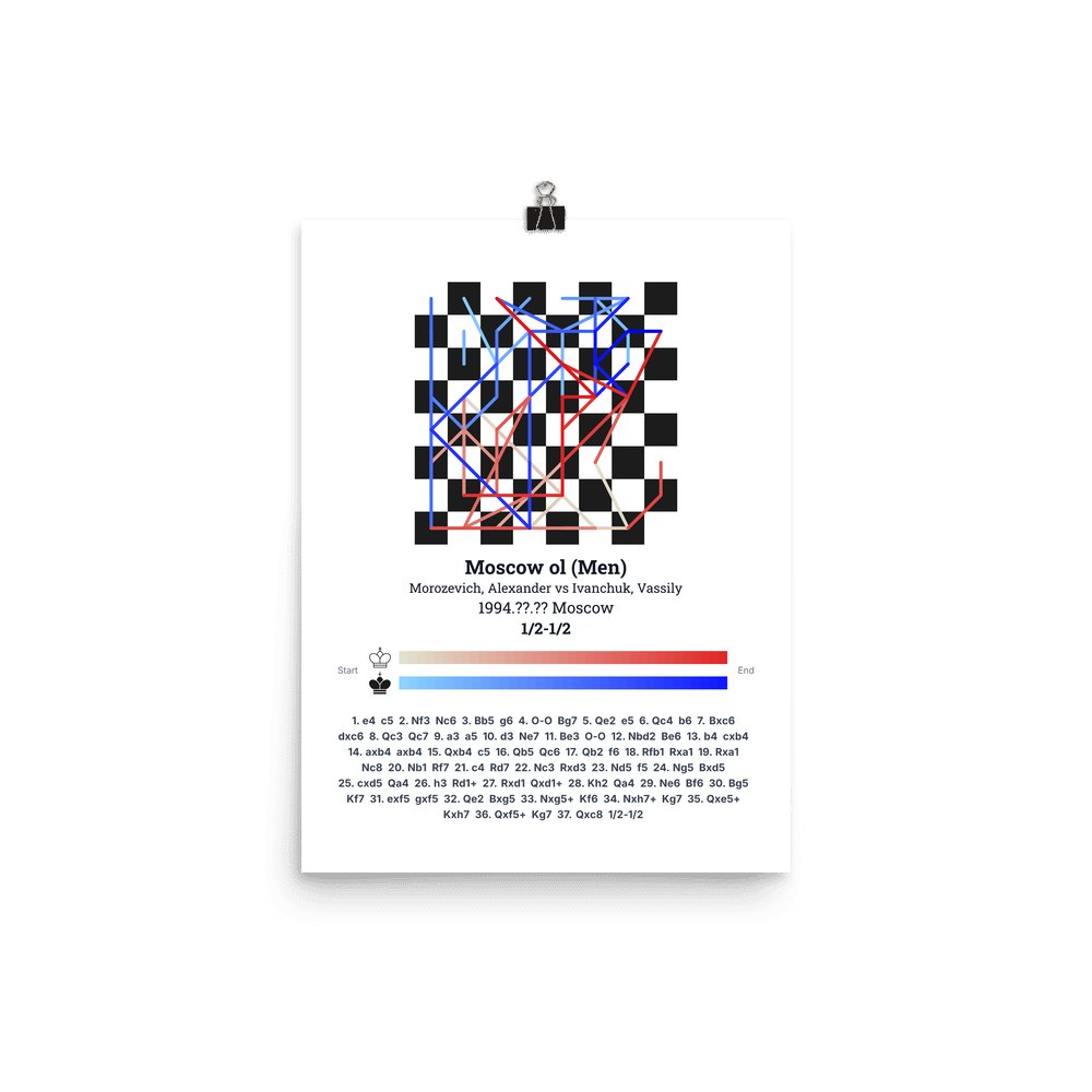 Museum-quality poster on thick, durable matte paper. A sharp, clean look for any chess visualisation.