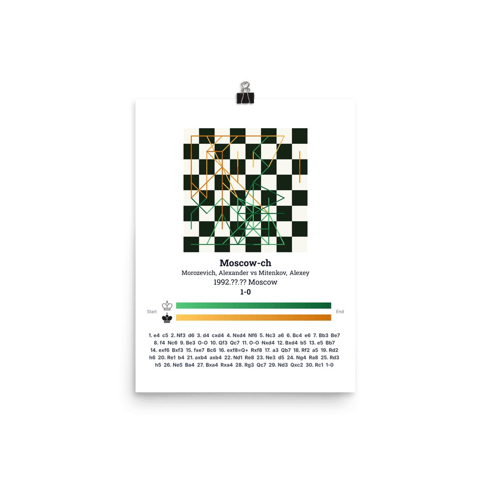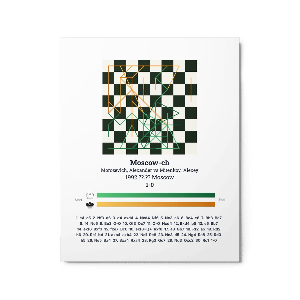 Museum-quality poster on thick, durable matte paper. A sharp, clean look for any chess visualisation.