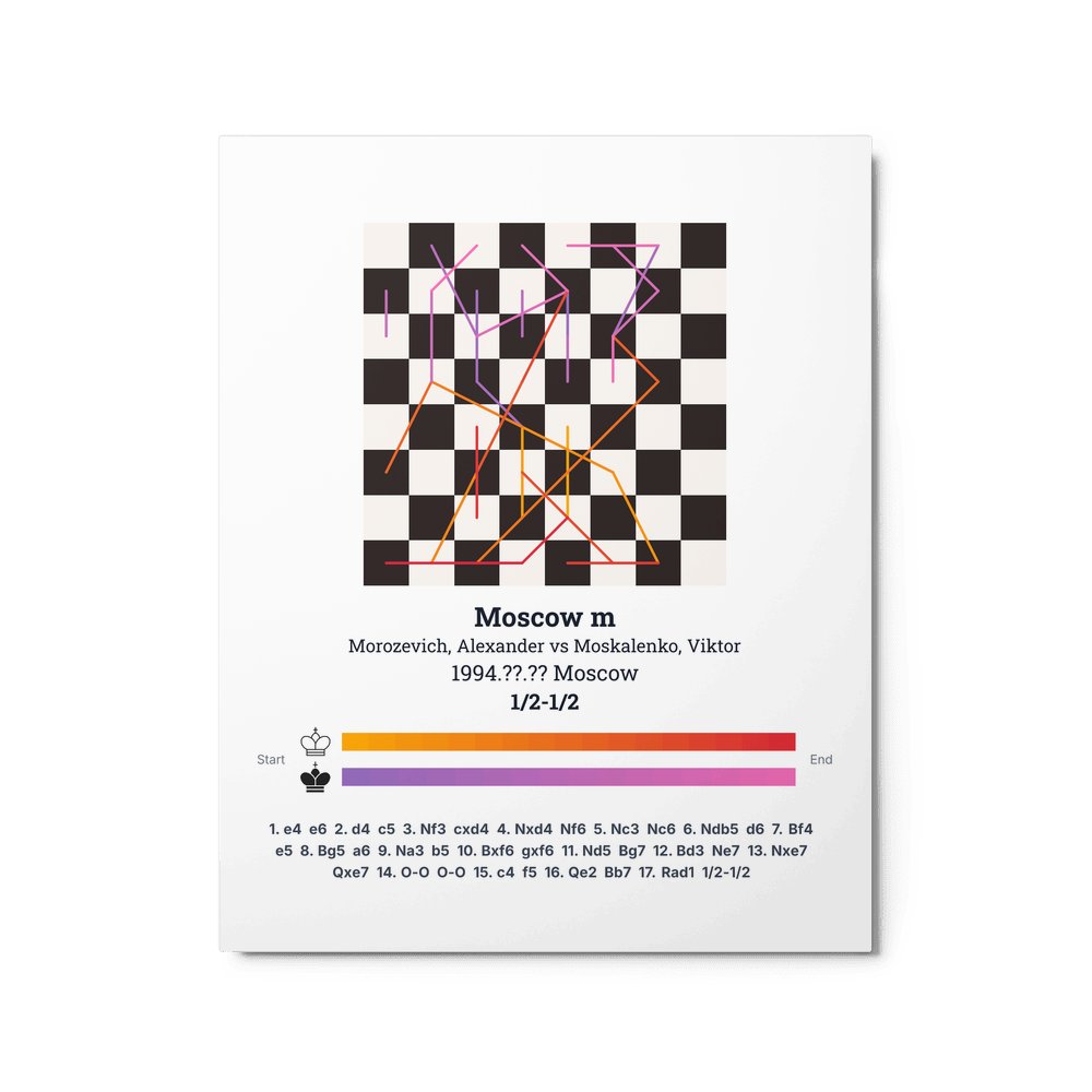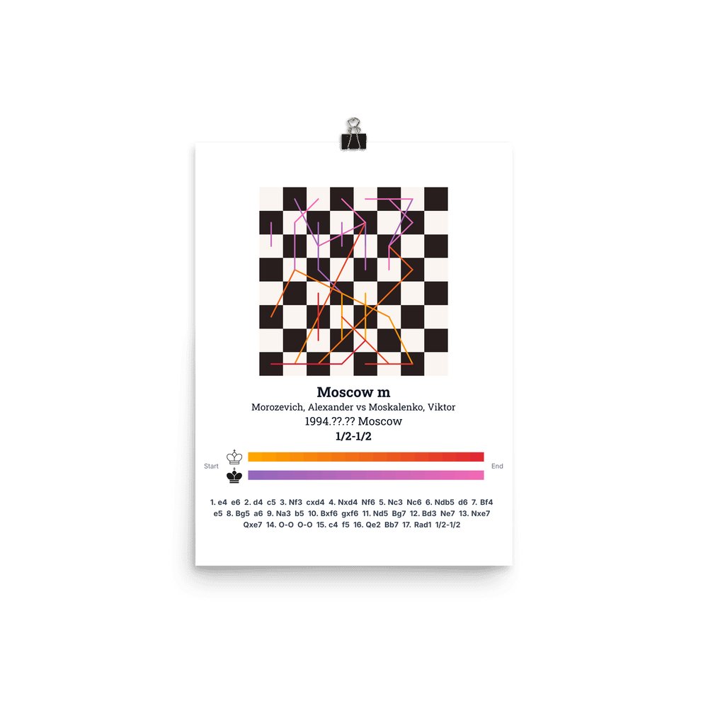 Museum-quality poster on thick, durable matte paper. A sharp, clean look for any chess visualisation.