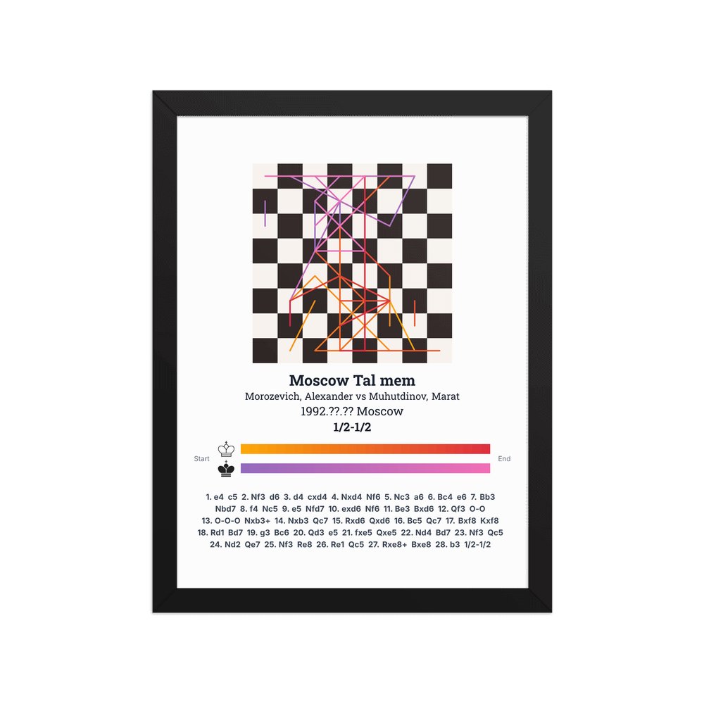 Museum-quality poster on thick, durable matte paper. A sharp, clean look for any chess visualisation.