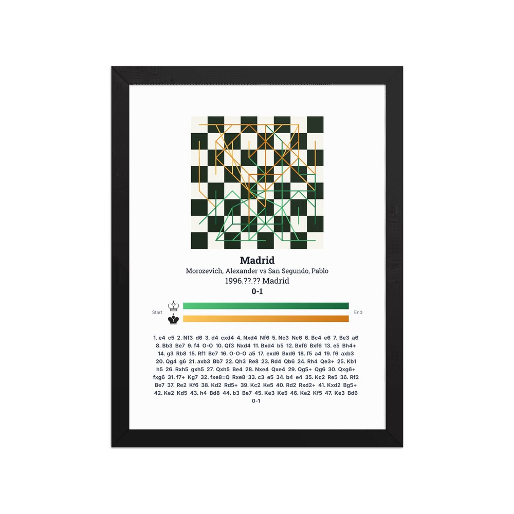 Museum-quality poster on thick, durable matte paper. A sharp, clean look for any chess visualisation.