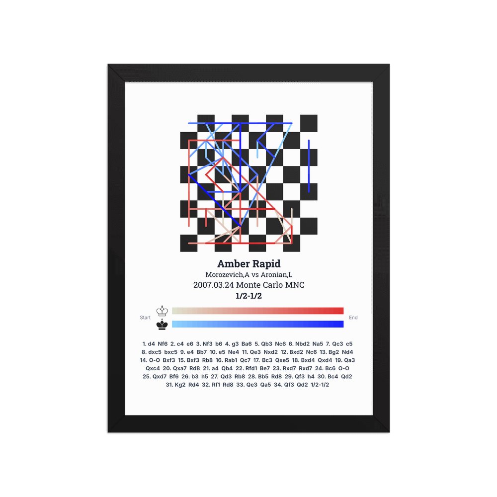 Museum-quality poster on thick, durable matte paper. A sharp, clean look for any chess visualisation.