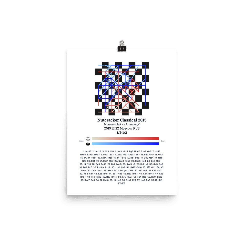 Museum-quality poster on thick, durable matte paper. A sharp, clean look for any chess visualisation.