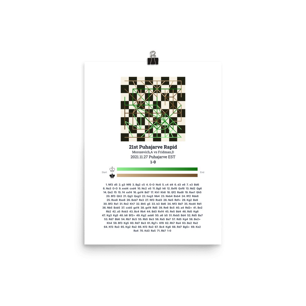 Museum-quality poster on thick, durable matte paper. A sharp, clean look for any chess visualisation.
