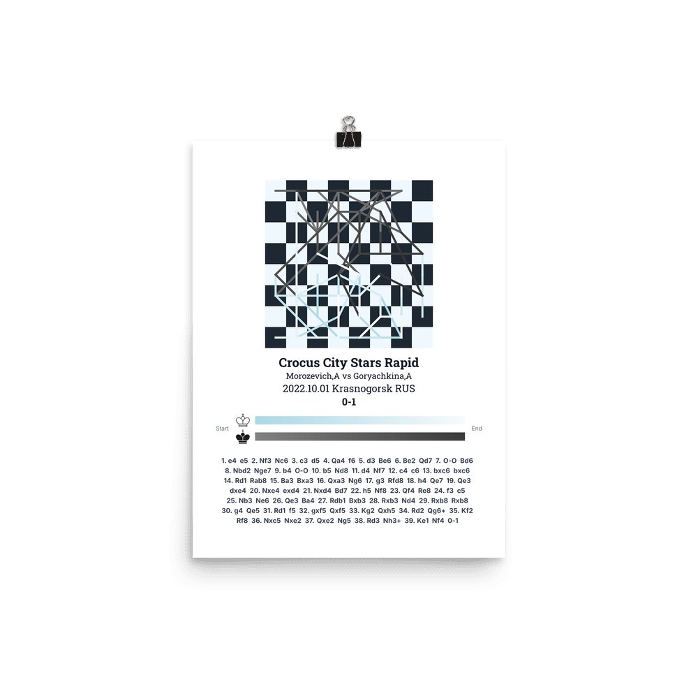 Museum-quality poster on thick, durable matte paper. A sharp, clean look for any chess visualisation.