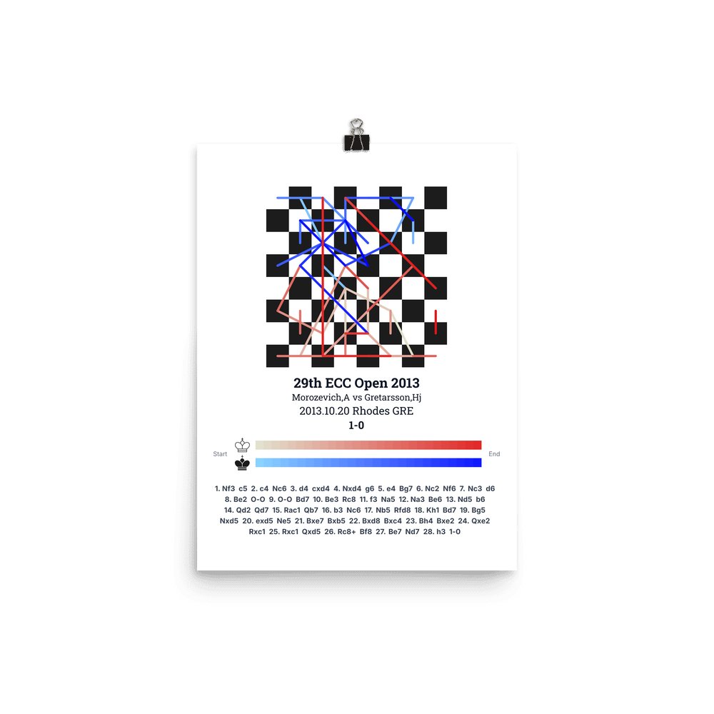 Museum-quality poster on thick, durable matte paper. A sharp, clean look for any chess visualisation.