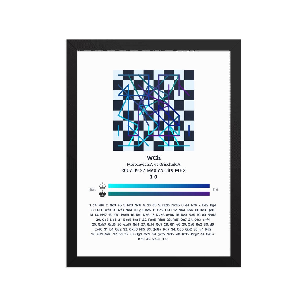 Museum-quality poster on thick, durable matte paper. A sharp, clean look for any chess visualisation.