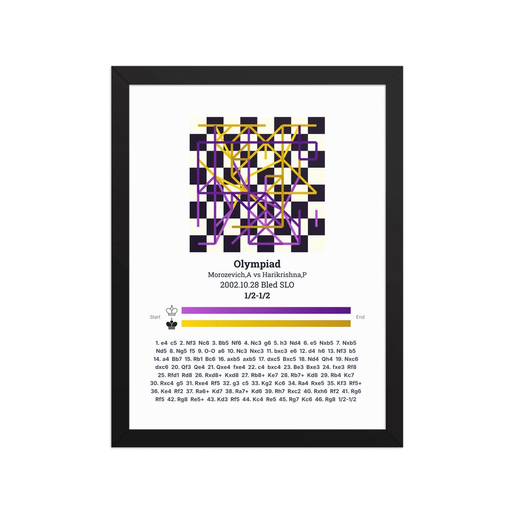 Museum-quality poster on thick, durable matte paper. A sharp, clean look for any chess visualisation.