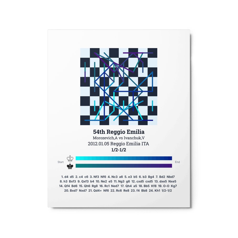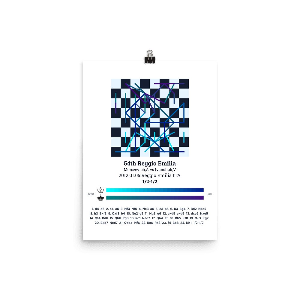 Museum-quality poster on thick, durable matte paper. A sharp, clean look for any chess visualisation.