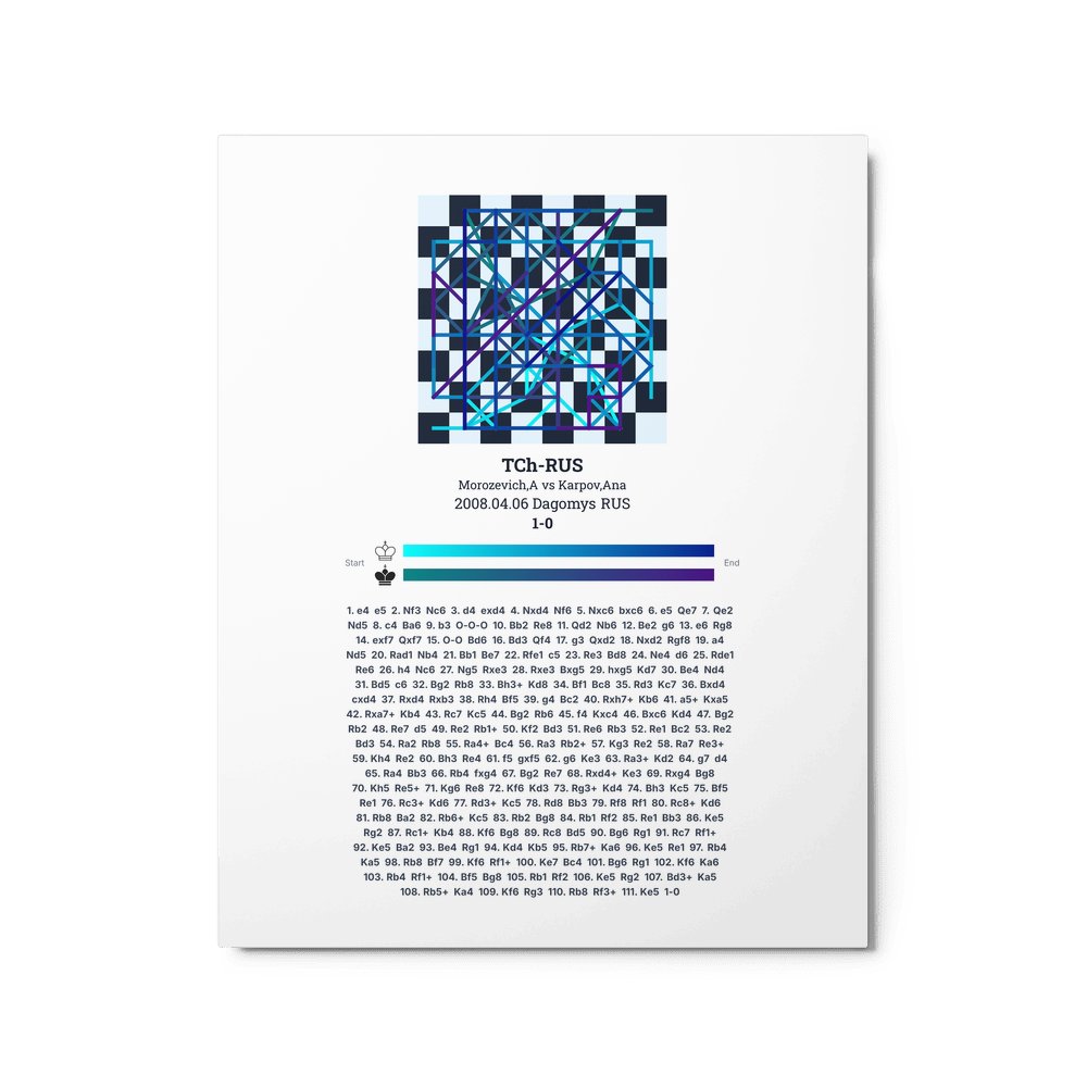 Museum-quality poster on thick, durable matte paper. A sharp, clean look for any chess visualisation.