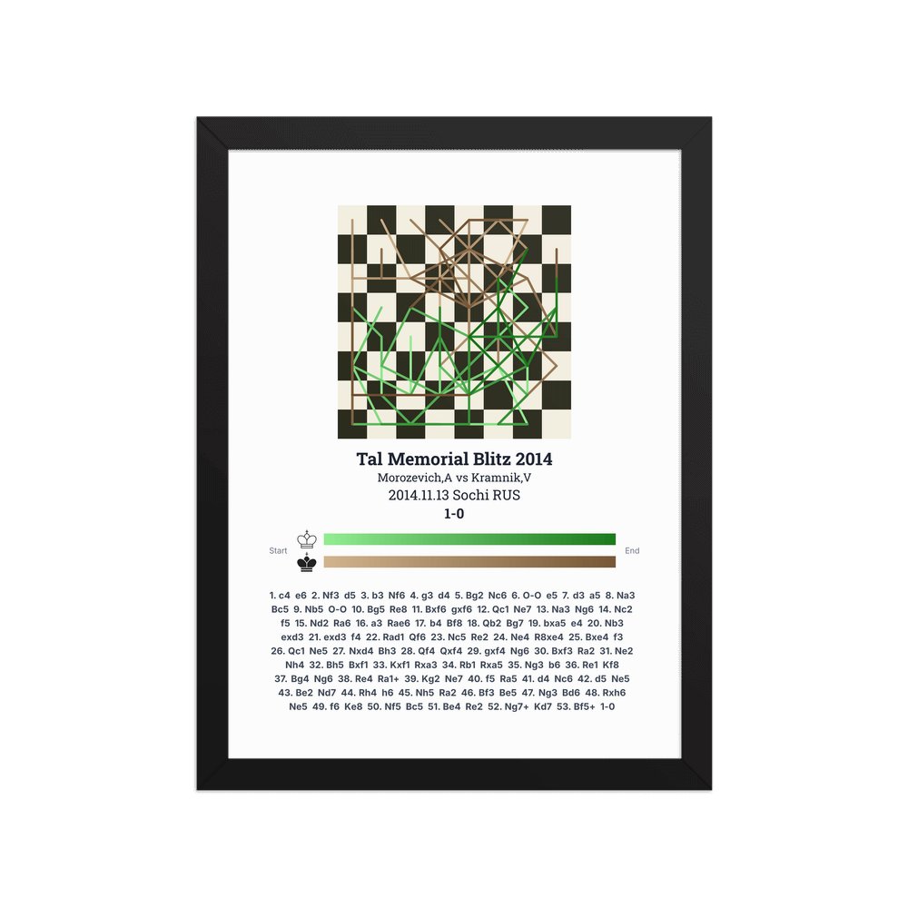 Museum-quality poster on thick, durable matte paper. A sharp, clean look for any chess visualisation.
