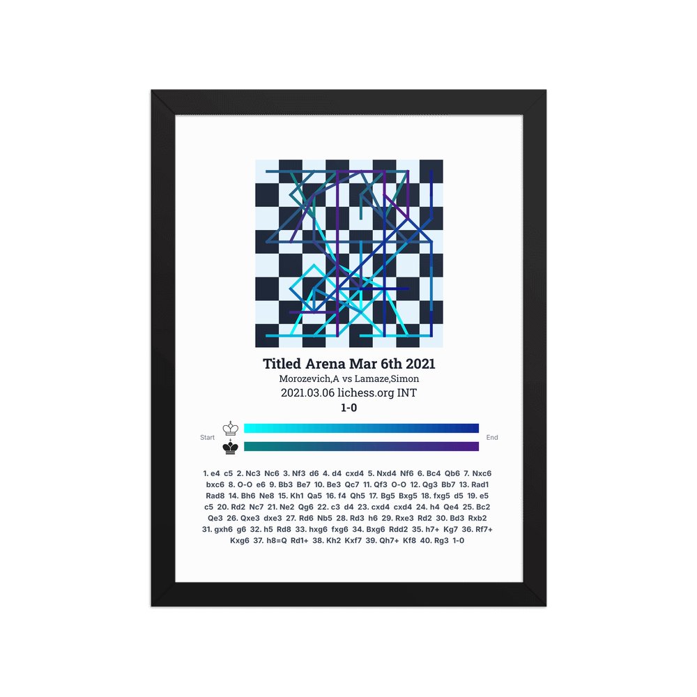 Museum-quality poster on thick, durable matte paper. A sharp, clean look for any chess visualisation.