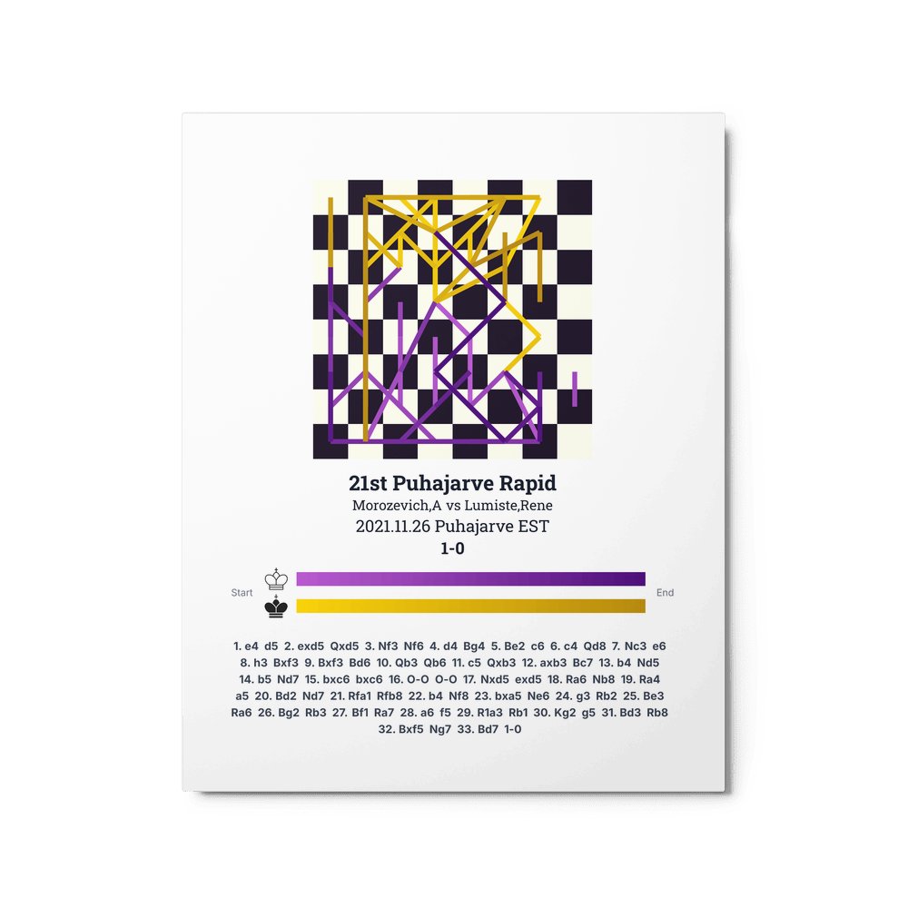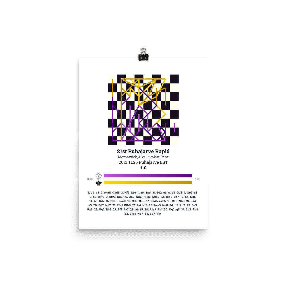 Museum-quality poster on thick, durable matte paper. A sharp, clean look for any chess visualisation.