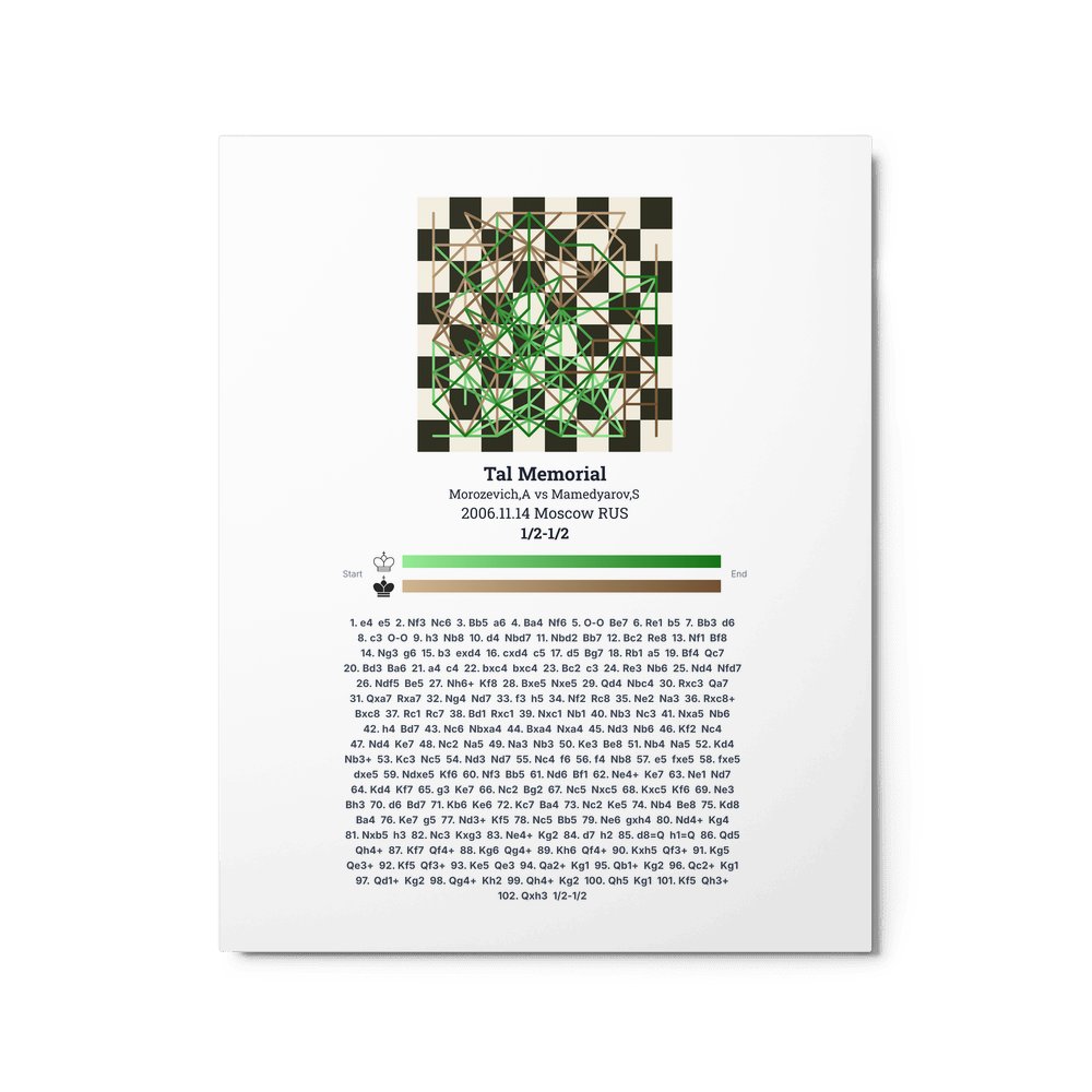 Museum-quality poster on thick, durable matte paper. A sharp, clean look for any chess visualisation.