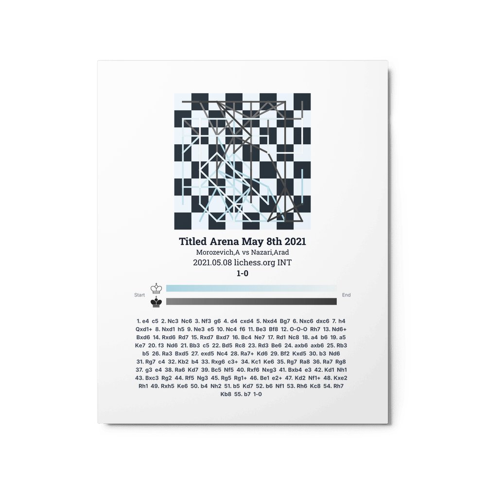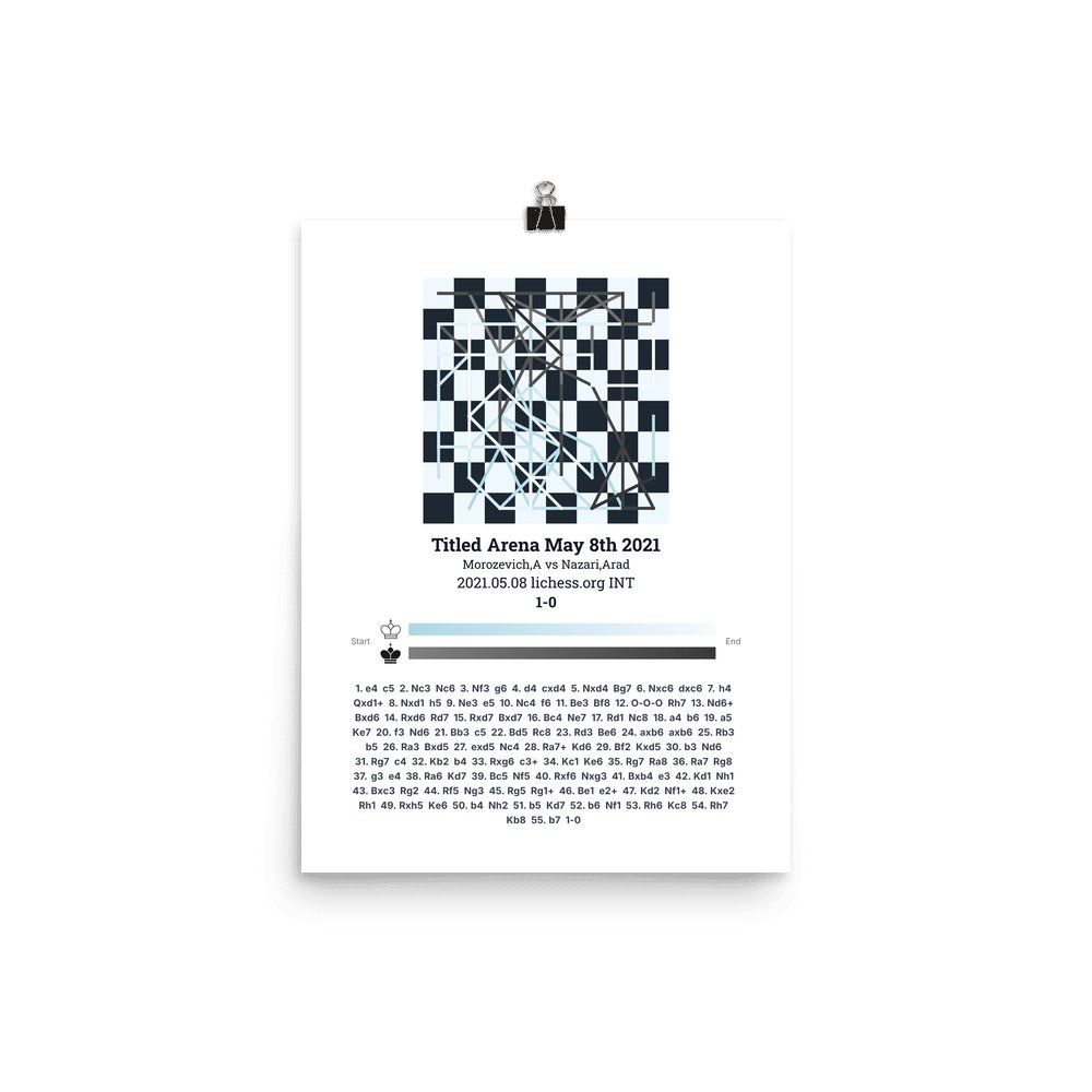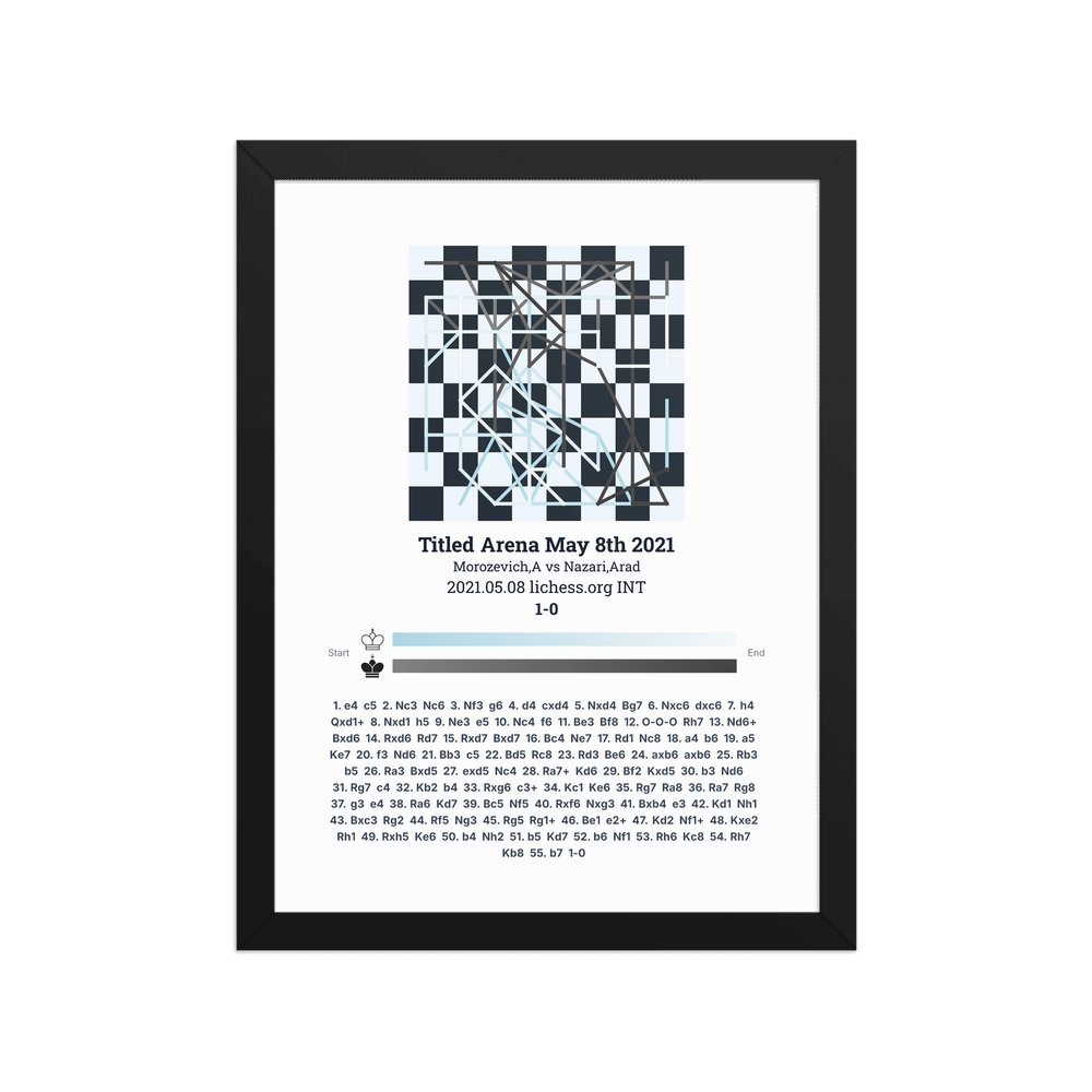 Museum-quality poster on thick, durable matte paper. A sharp, clean look for any chess visualisation.