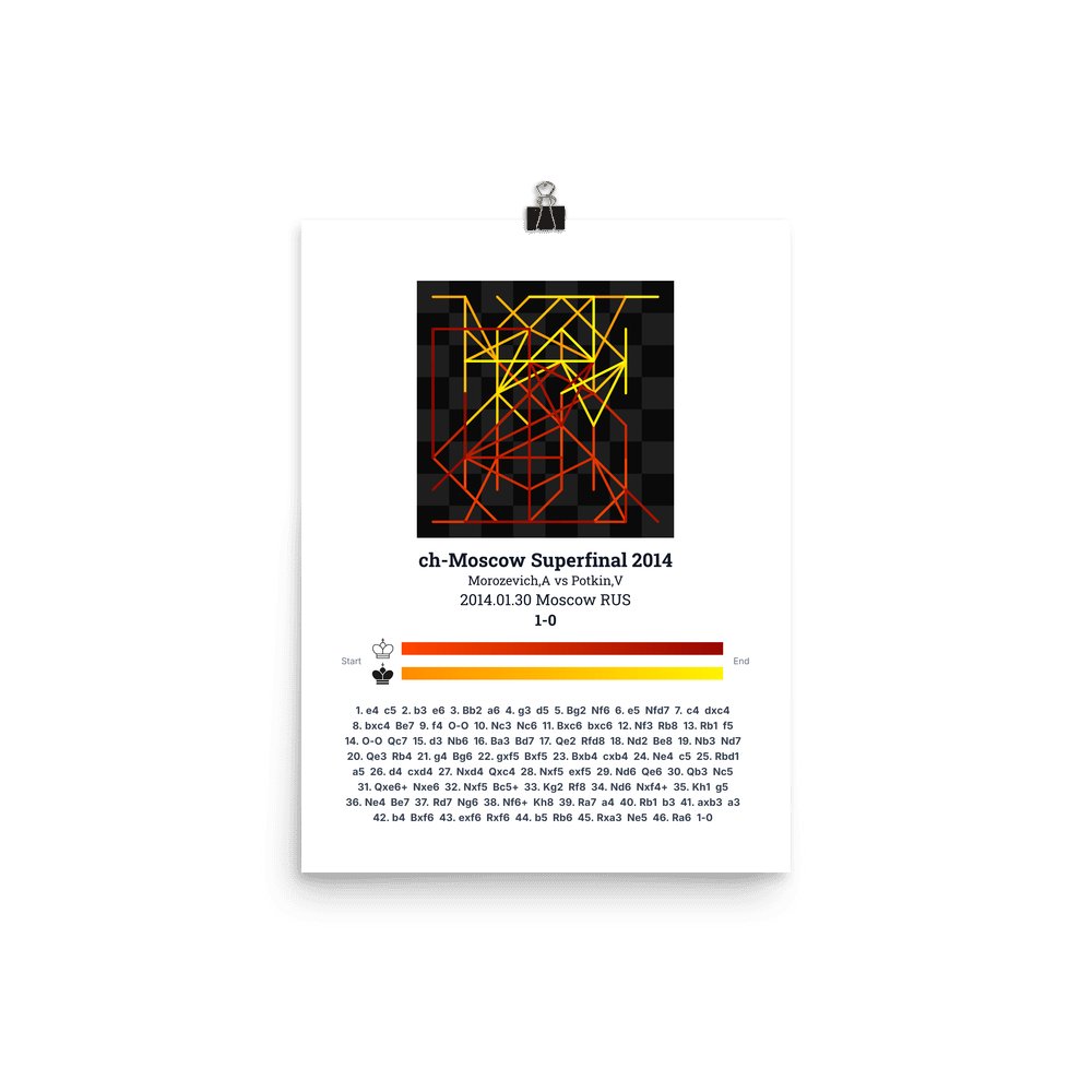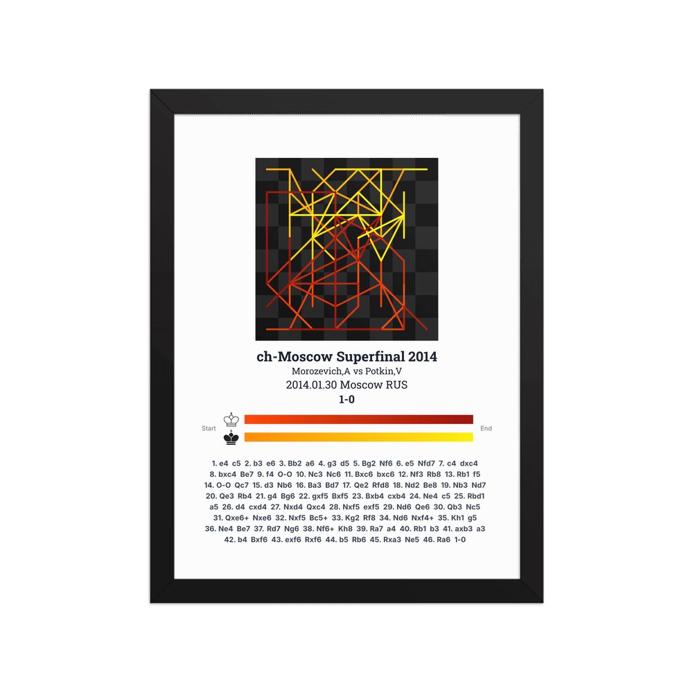 Museum-quality poster on thick, durable matte paper. A sharp, clean look for any chess visualisation.