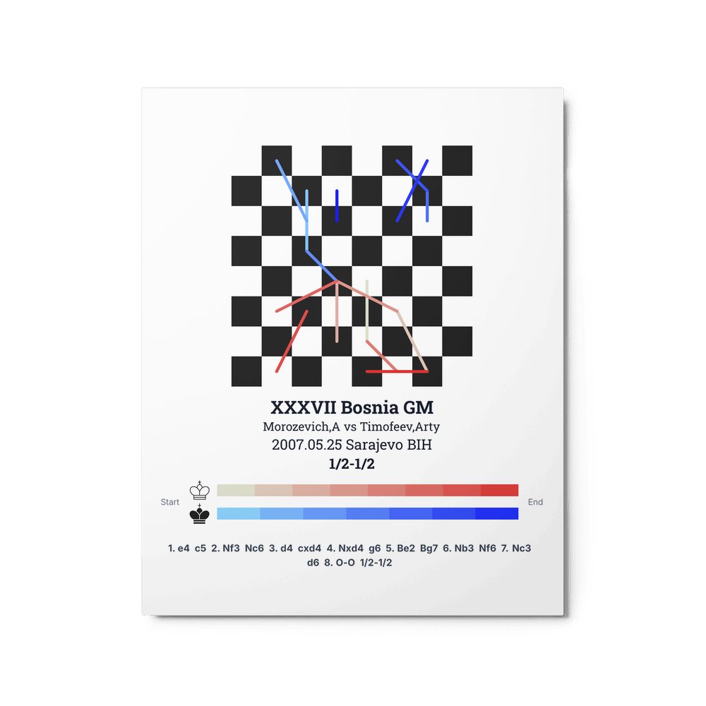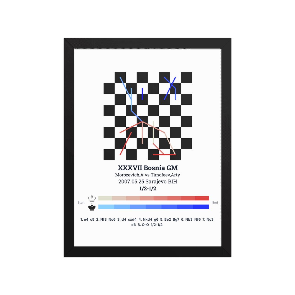 Museum-quality poster on thick, durable matte paper. A sharp, clean look for any chess visualisation.