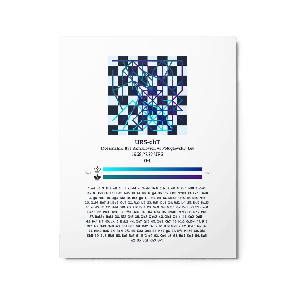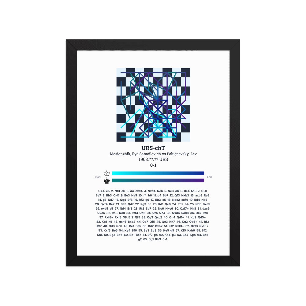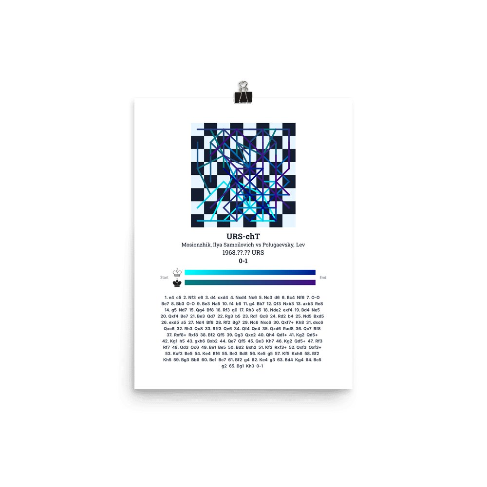 Museum-quality poster on thick, durable matte paper. A sharp, clean look for any chess visualisation.