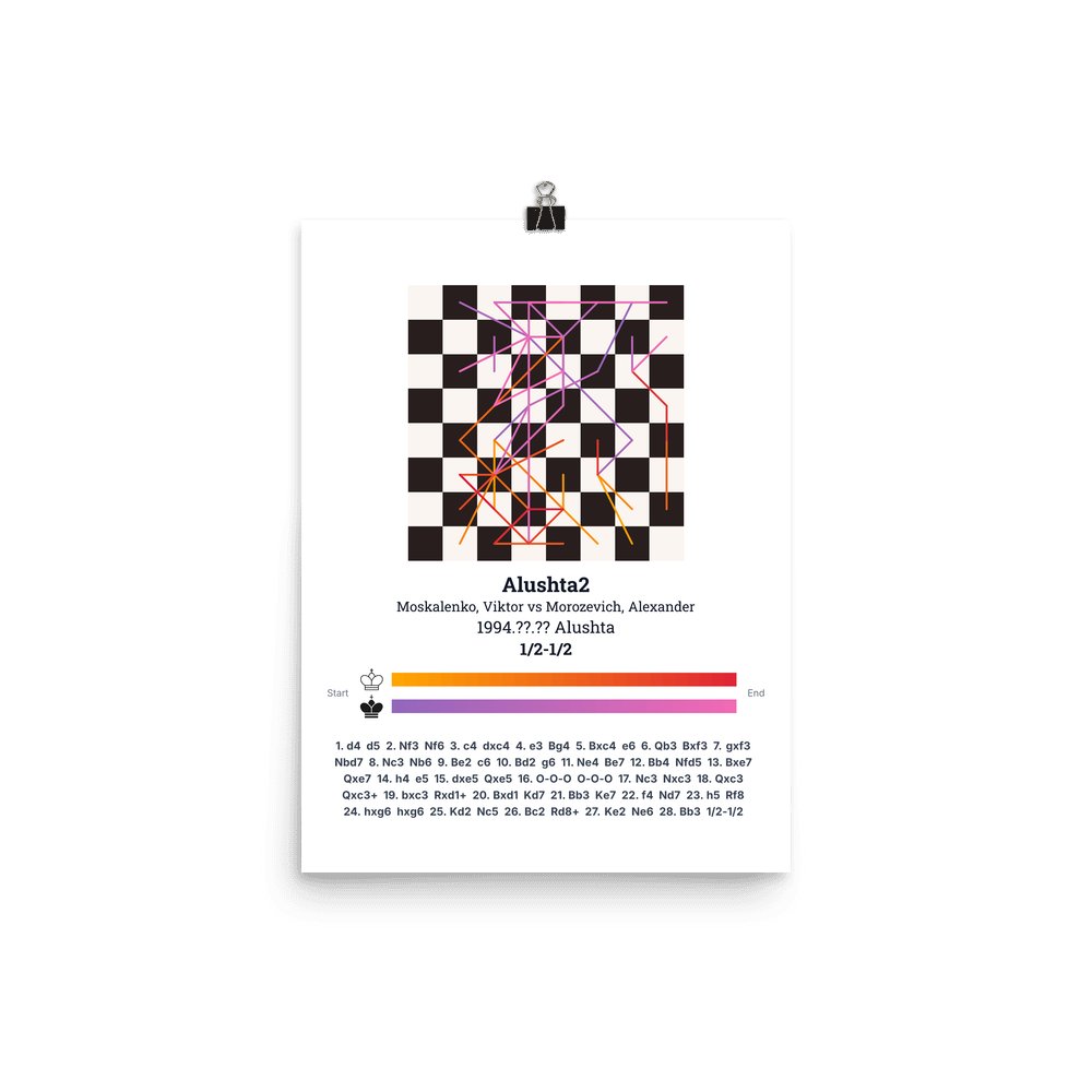 Museum-quality poster on thick, durable matte paper. A sharp, clean look for any chess visualisation.