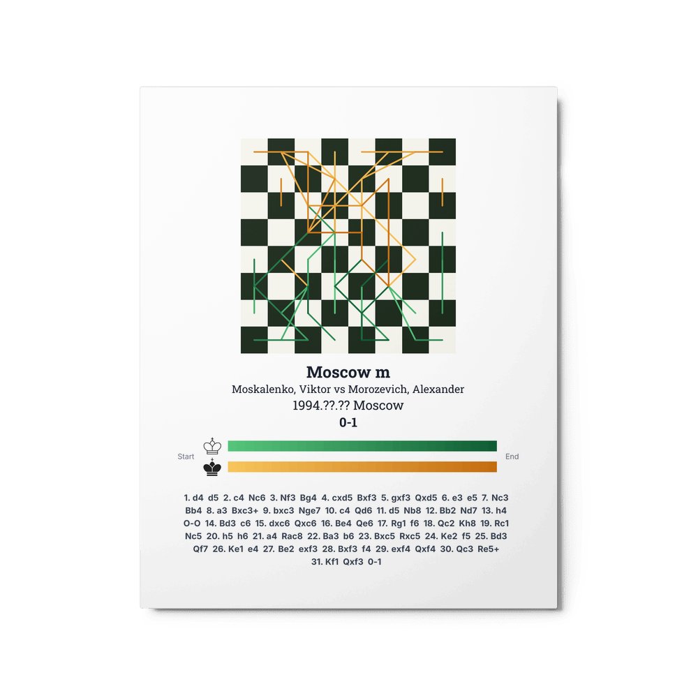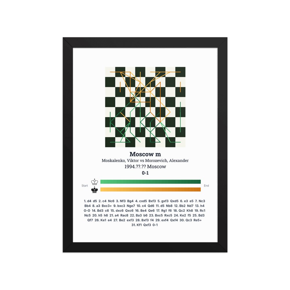 Museum-quality poster on thick, durable matte paper. A sharp, clean look for any chess visualisation.