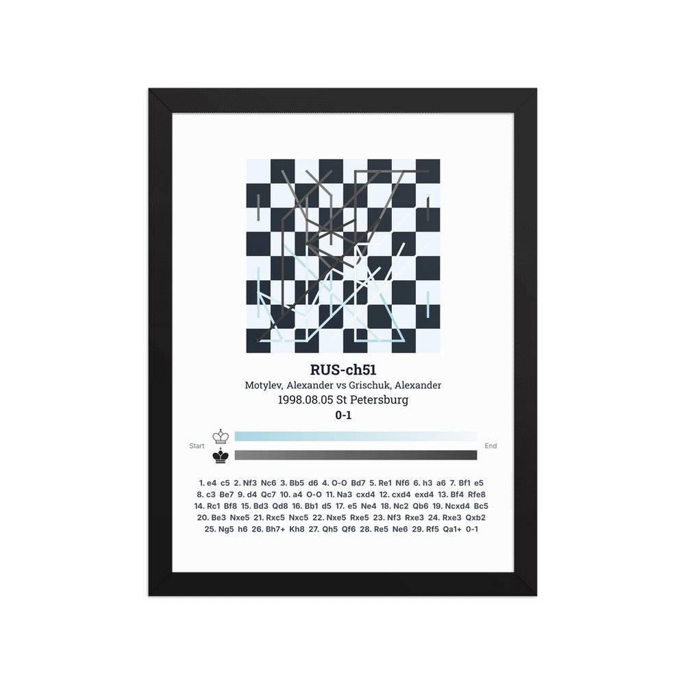 Museum-quality poster on thick, durable matte paper. A sharp, clean look for any chess visualisation.