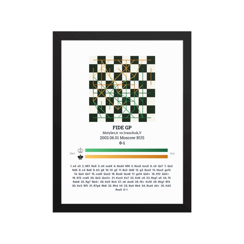 Museum-quality poster on thick, durable matte paper. A sharp, clean look for any chess visualisation.
