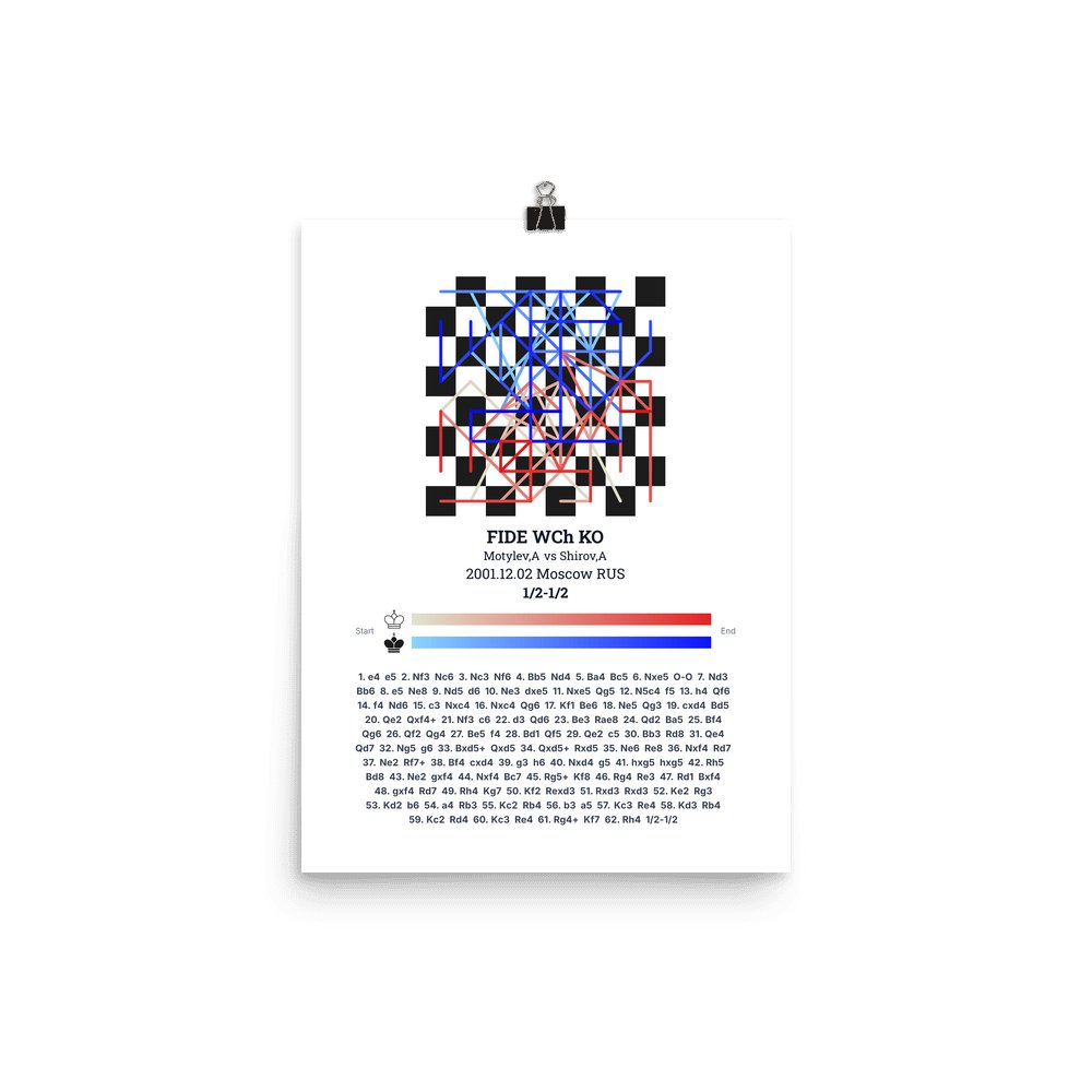 Museum-quality poster on thick, durable matte paper. A sharp, clean look for any chess visualisation.
