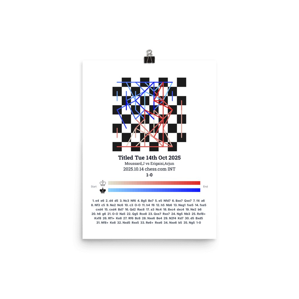 Museum-quality poster on thick, durable matte paper. A sharp, clean look for any chess visualisation.