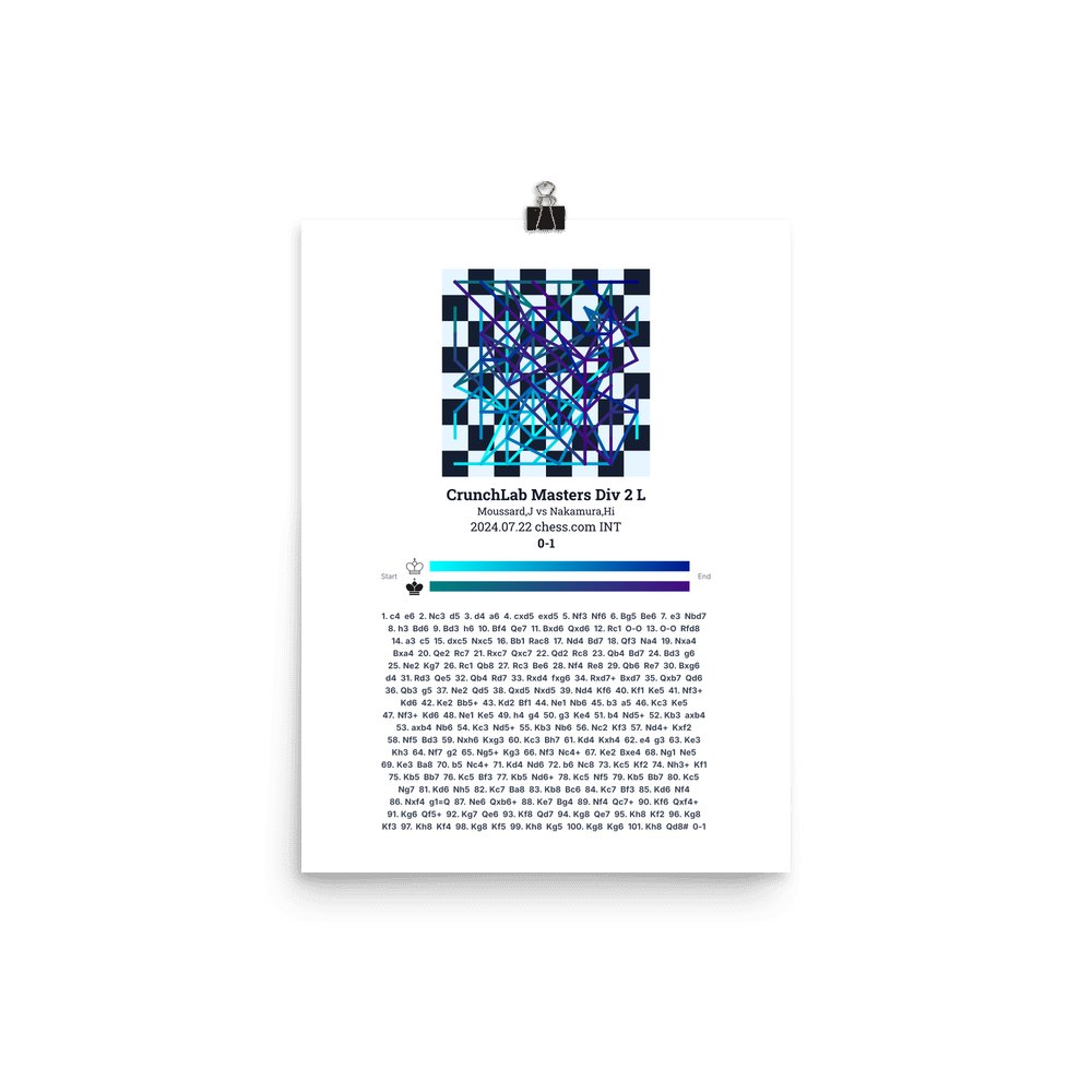Museum-quality poster on thick, durable matte paper. A sharp, clean look for any chess visualisation.