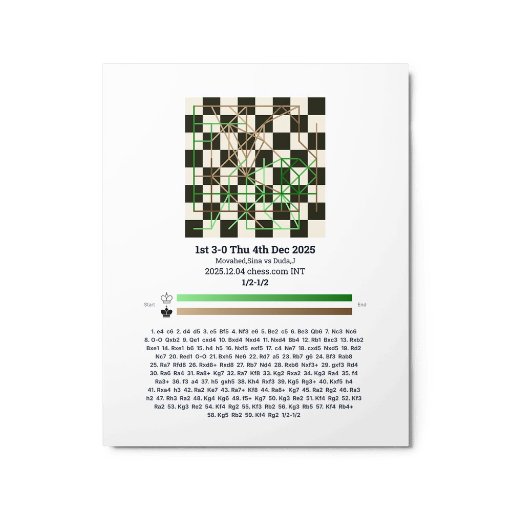 Museum-quality poster on thick, durable matte paper. A sharp, clean look for any chess visualisation.