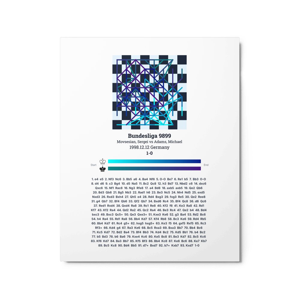 Museum-quality poster on thick, durable matte paper. A sharp, clean look for any chess visualisation.