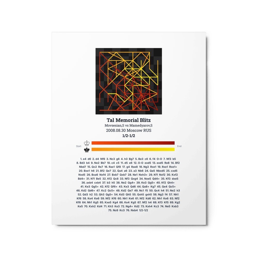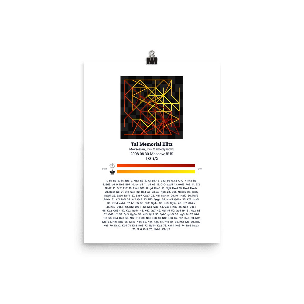 Museum-quality poster on thick, durable matte paper. A sharp, clean look for any chess visualisation.